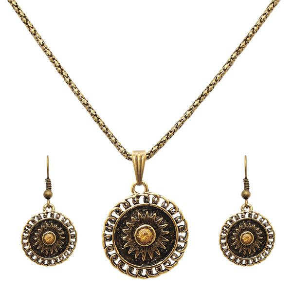 Tip Top Fashions 1202543 Round Shaped Gold Plated Pendant Elegant Fine Jewelry Set
