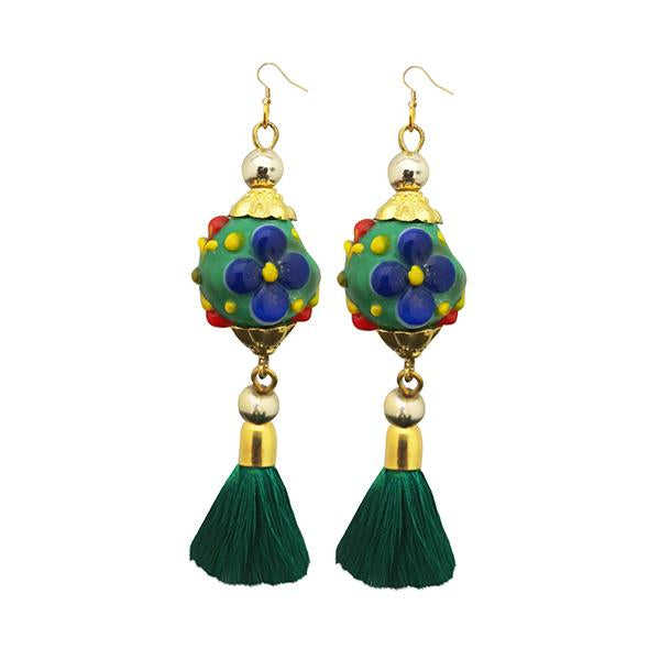 Tip Top Fashions 1313312E Green Thread Gold Plated Tassel Earrings Stylish Fashion Accessory