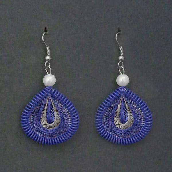 Tip Top Fashions 1316108B Blue Thread Dangle Earrings Rhodium Plated Religious Copper Brass Flower Zircon Pearl Diamond for