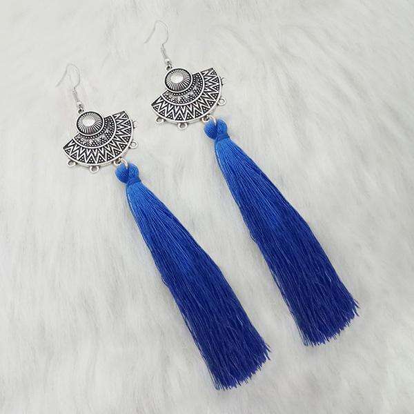 Tip Top Fashions Blue Thread Rhodium Plated Tassel Earrings-1313324D