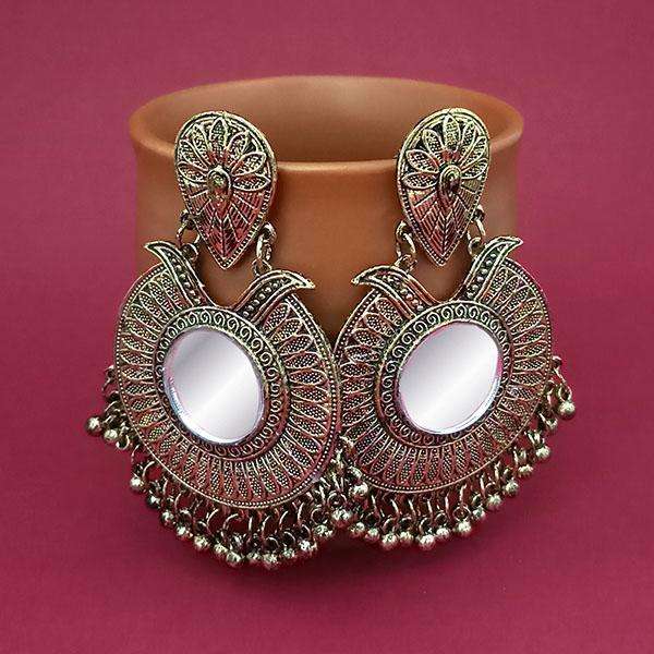Tip Top Fashions Gold Plated Mirror Dangler Afghani Earrings for Weddings and Parties-1314834B