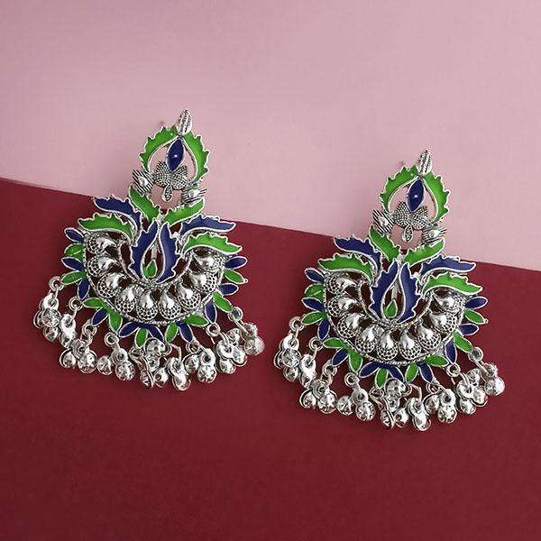 Tip Top Fashions Silver Plated Green Meenakari Afghani Fine Hoop Earrings 1314259D