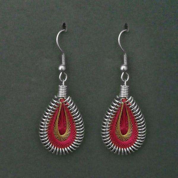 Tip Top Fashions Vintage Drop Earrings Rhodium Plated Pink Thread Dangler Water Drop Tassel Shape Diamond for Weddings-1316101Q