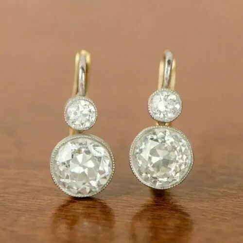 Tishya Diamond 925 Silver 2Ct Cut Moissanite Vintage Drop Hoop Earrings Women's Minimalist Engagement Gift Anniversary Party 5gm