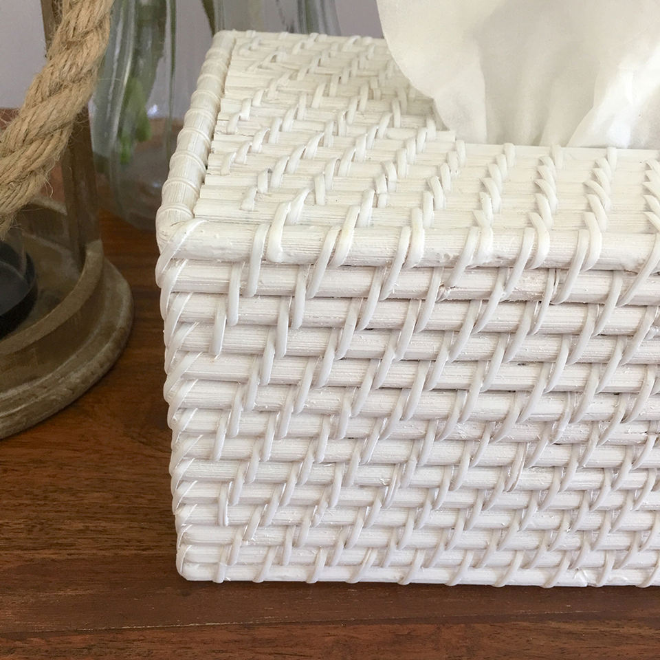 Tissue Box Organizer Elegant Long Rectangle Rattan Tissue Box Cover Whitewashed Water-proof for Bathroom
