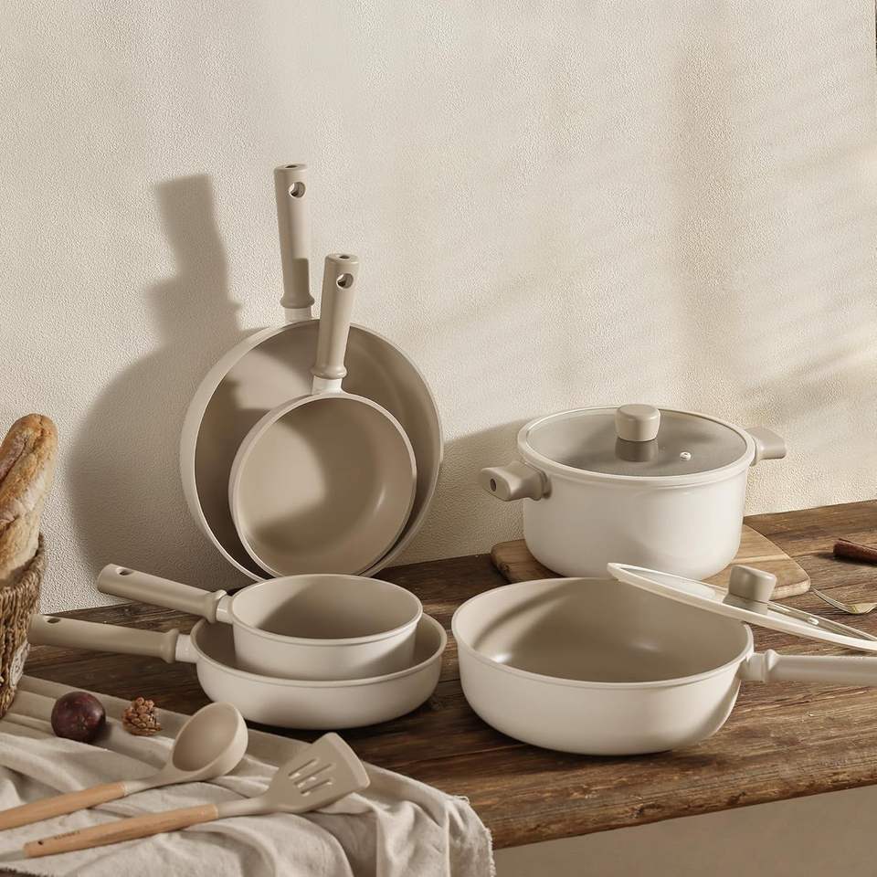 Titanium Ceramic Non-Stick Cookware Set Ac Series Induction Gas Compatible Oven Safe Complete Kitchen Cooking Set