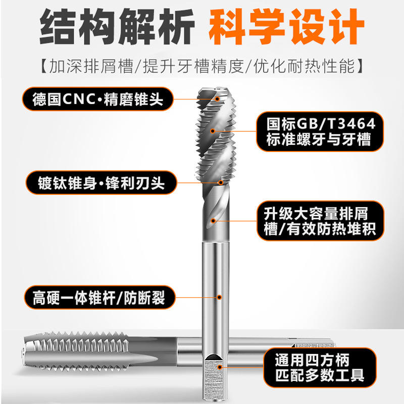 Titanium-Plated Spiral Tapping Drill Bits for Stainless Steel Large Stock Machine Taps Available at Factory
