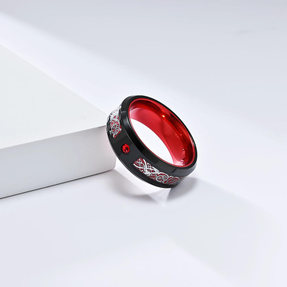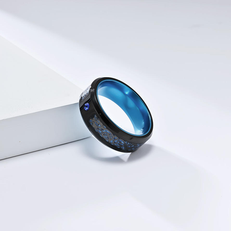 Titanium Steel Dragon Pattern Ring Blue Red Green Inlay Men's Jewelry Gift