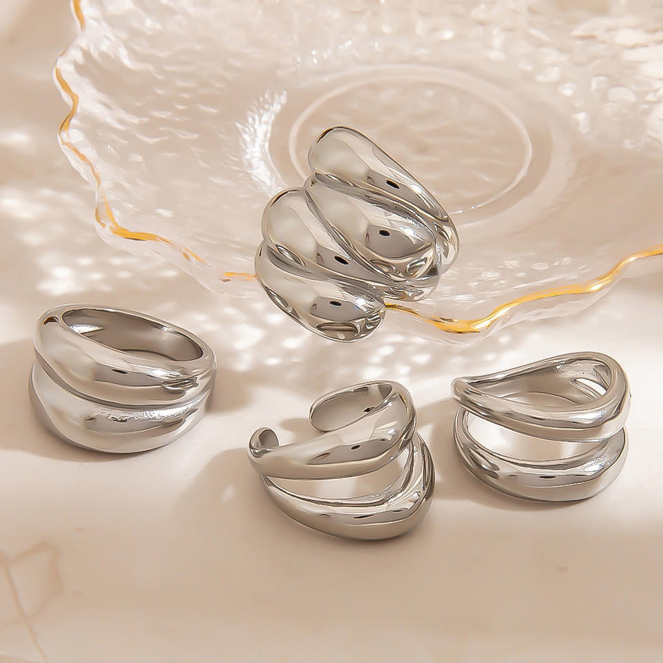 Titanium Steel Open Ring Wave Geometry Oval Shape For Women Jewelry Gift