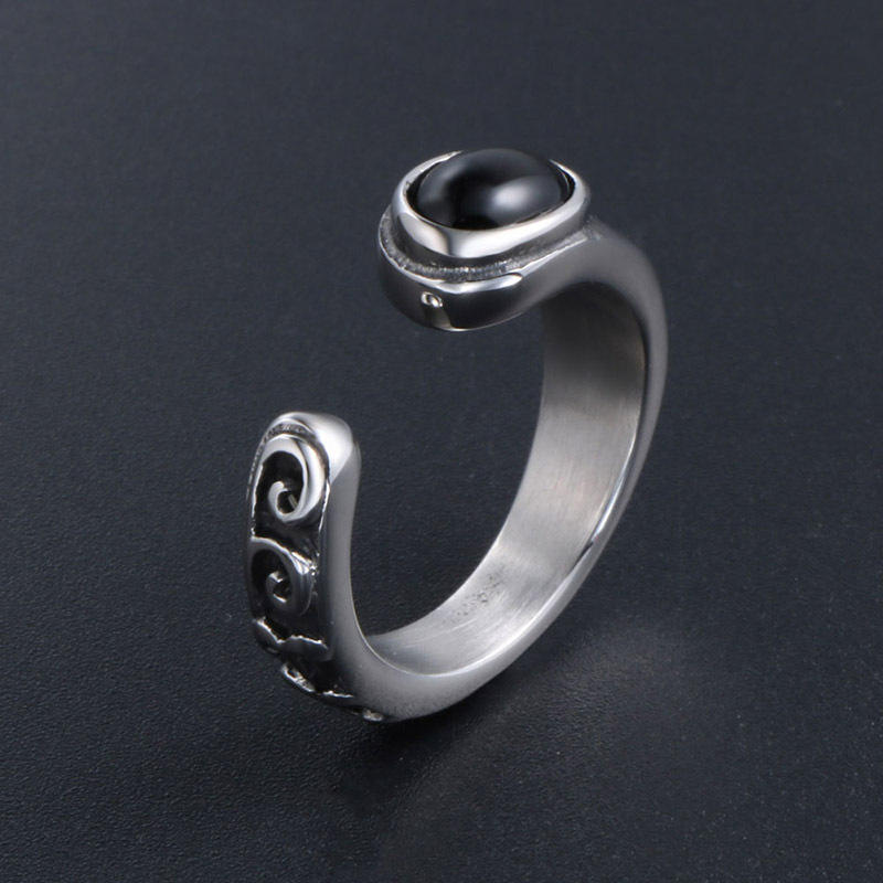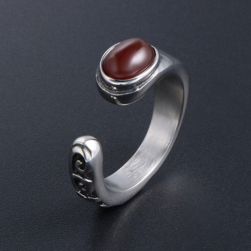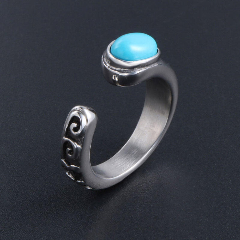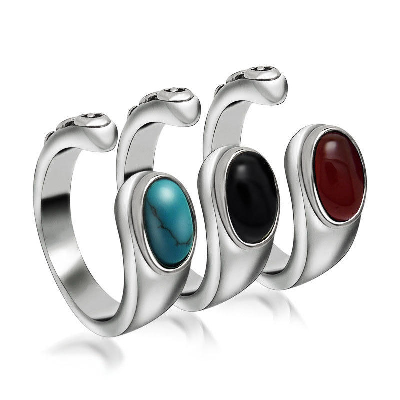 Titanium Steel Retro Geometric U Shape Ring With Turquoise Black Red Gemstone Bezel Setting Unisex Fashion Jewelry SA364