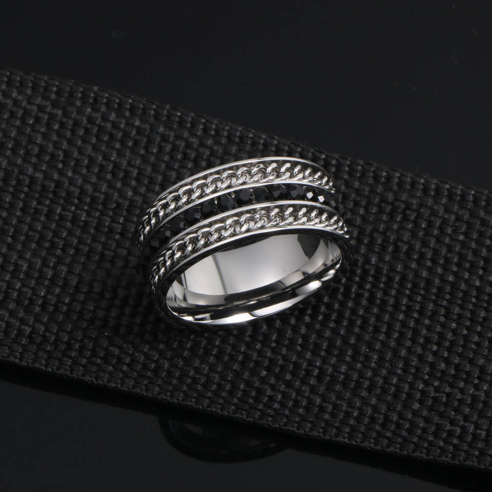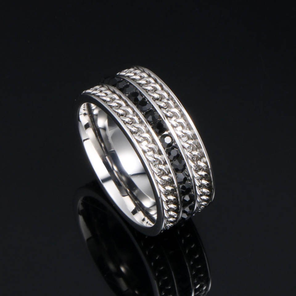 Titanium Steel Ring Chain Pattern Black Stones Channel Setting Men's Fashion Ring SA1014