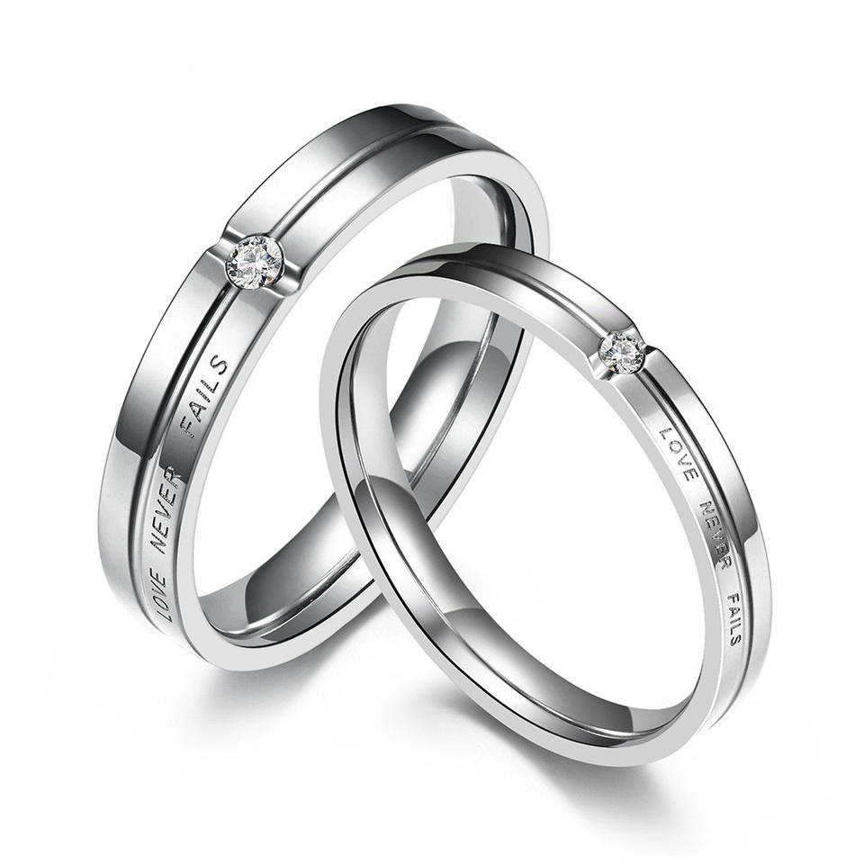 Titanium Steel Rings For Couples Engagement Wedding Unisex Black And Silver With Diamond Inlay Pave Setting