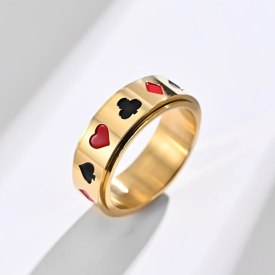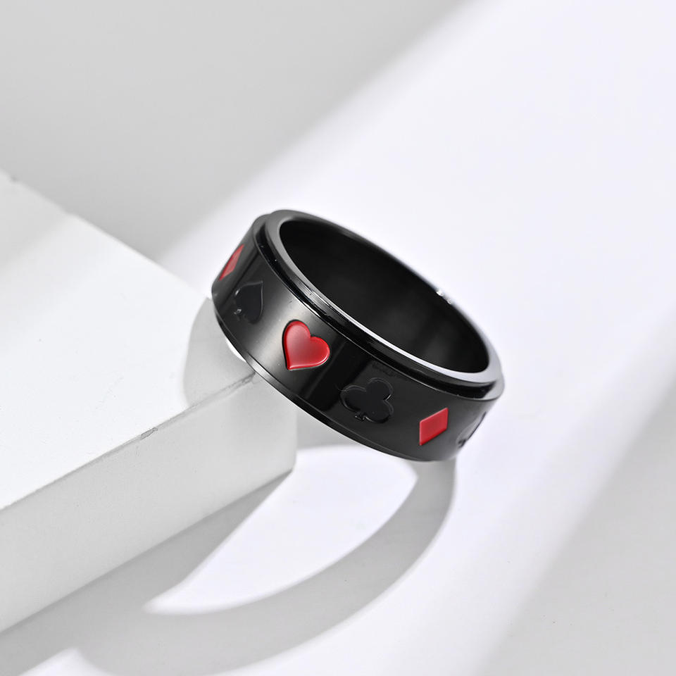 Titanium Steel Rotatable Ring With Spade Heart Club Diamond Playing Card Pattern Unisex Fashion Jewelry Gift