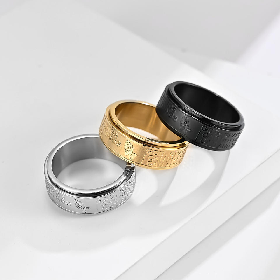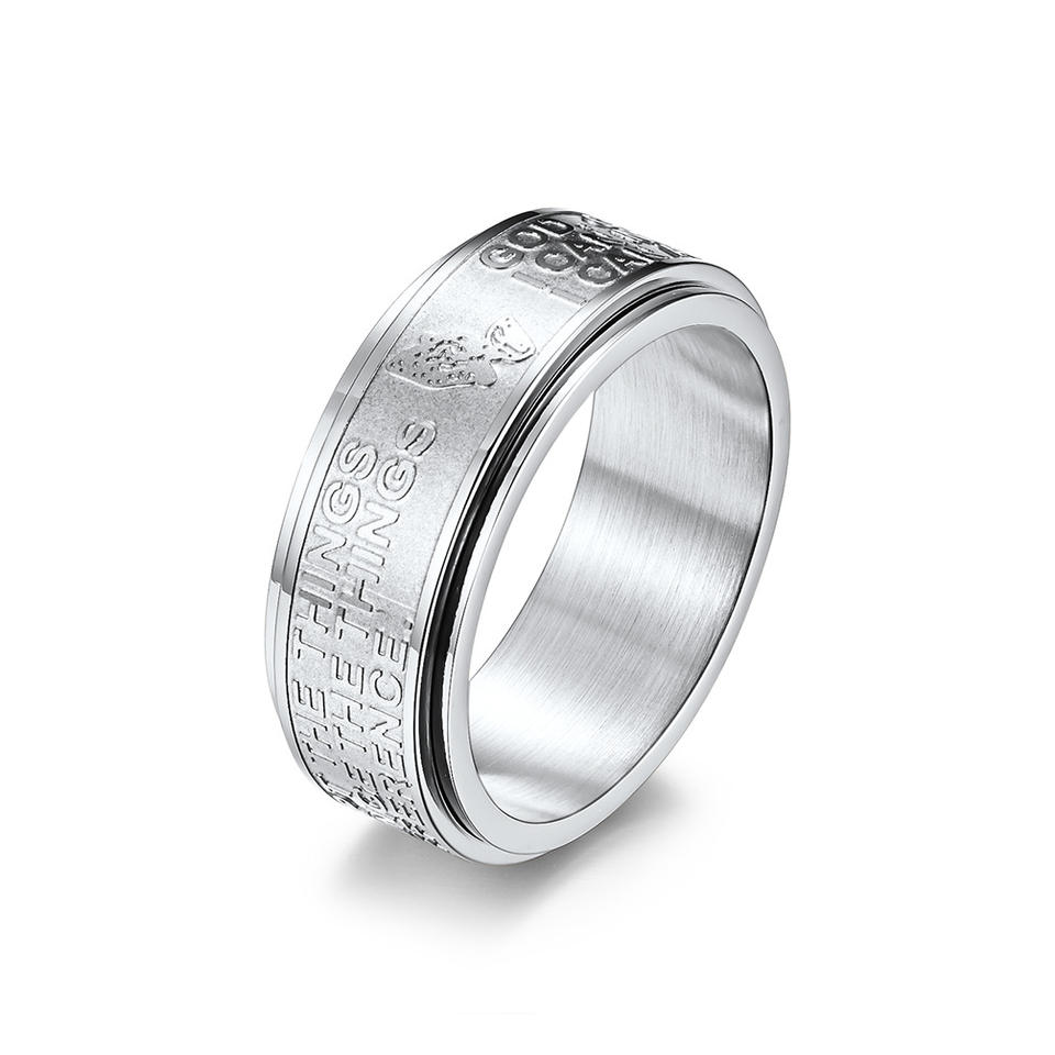 Titanium Steel Rotating Ring For Men Index Finger Jewelry Gift Silver Gold Black Letter Pattern Geometric Shape