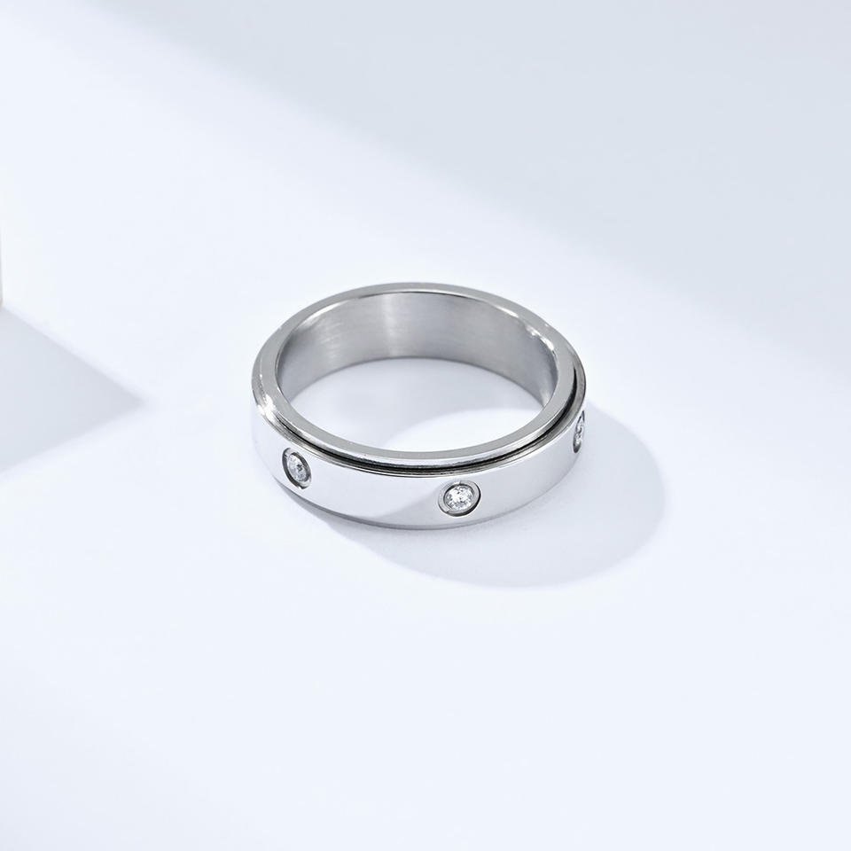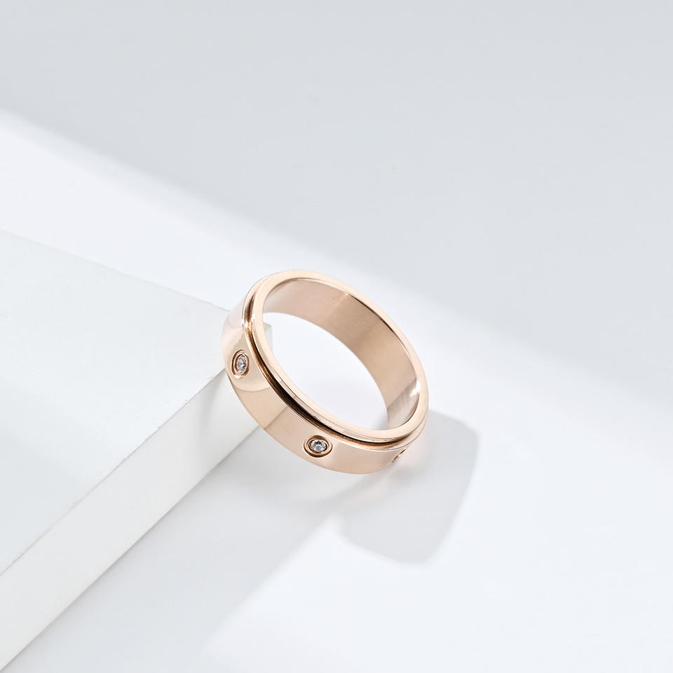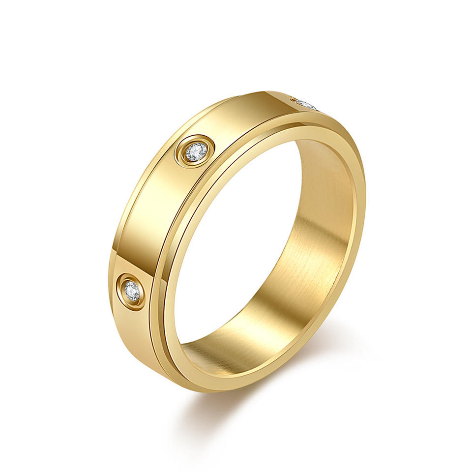 Titanium Steel Rotating Ring With Zircon Inlay Unisex Daily Jewelry Gold Black Rose Gold Silver Color Options