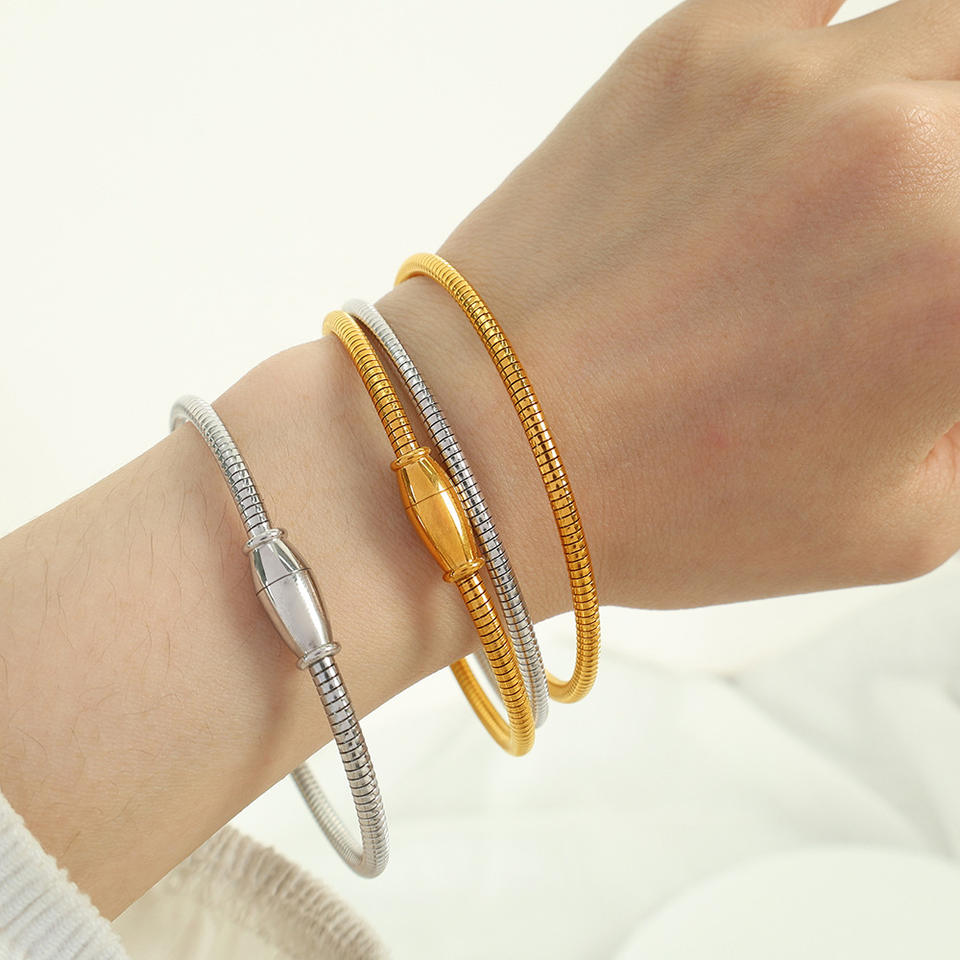 Titanium Steel Spring Snake Chain Bracelet Magnetic Elastic Bangle Unisex Jewelry Gift Gold Silver Color