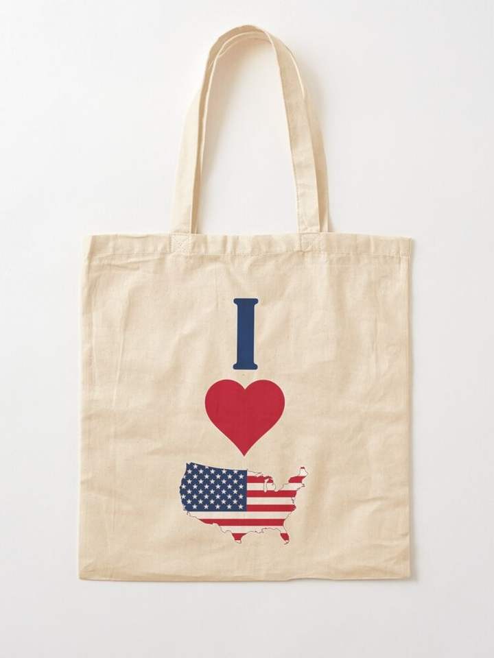 Title: Wholesale American Flag Cotton Canvas Tote Bag Reusable Grocery Shoulder Pouch Daily Shopping Handbag Travel Souvenir
