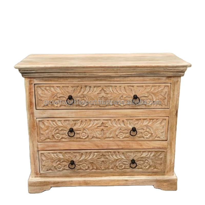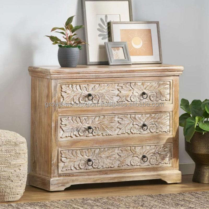 Tiva Modern Wooden Chest of Drawers with 3 Drawers White Distress Finish Elegant Design for Hotel Use Mango Wood