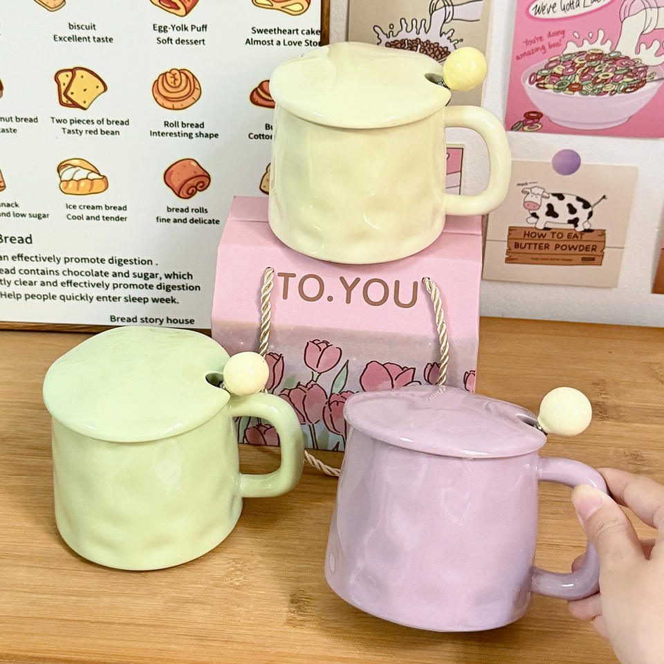 To.You Ceramic Mug 301-400ml With Lid Heat Resistant Gift For Women Home Use
