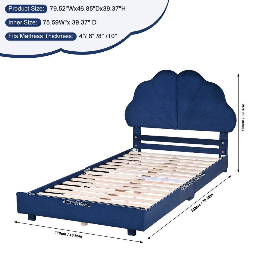 Toddler Beds ,Upholstered Twin Bed Frames for Kids ,Kid Bed with Velvet ,Adjustable Height Headboard Children Bed (75" Wx39 D)