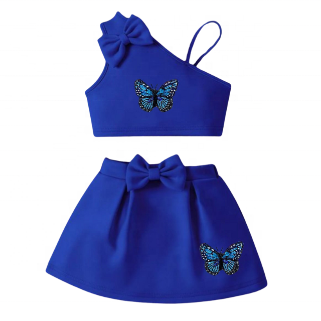 Toddler Girls Bow Front Top and Fold Pleated Skirt Two-Piece Cute Sets for Girls Butterfly Sequin Motifs