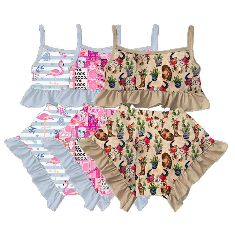 Toddler Girls Strap Ruffle Floral Vest Small Top Matching Little Bloomer Clothing Baby Girl Outfit Sets