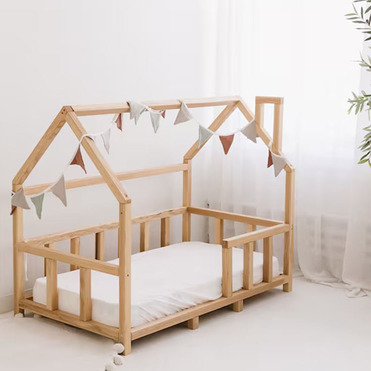 Toddler House Bed Frame Montessori Floor Bed Baby Wooden Crib