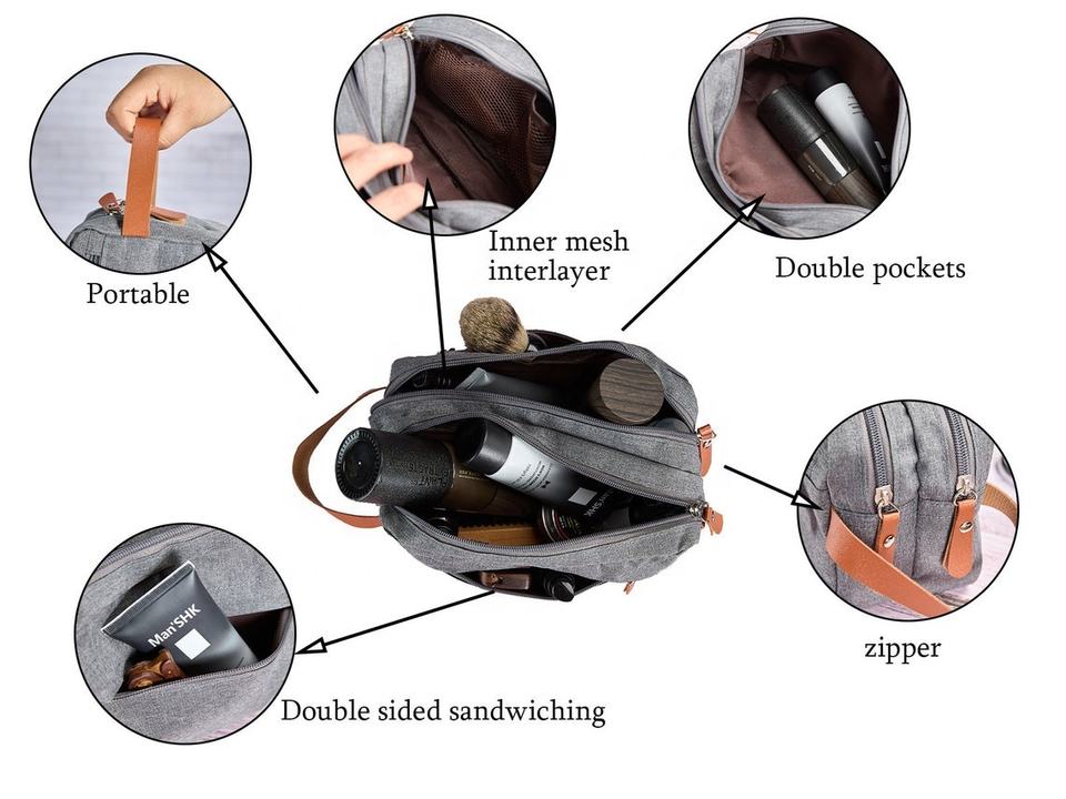 Toiletry Bag Genuine Leather and Canvas Bag, Dopp Kit for Men and Women Big Capacity Cosmetic Travel Kit Case