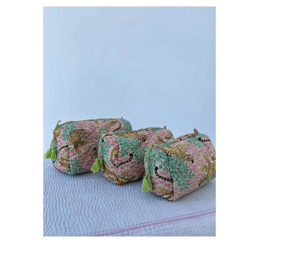 Toiletry Bag Set 3 Pcs Quilted Makeup Cosmetic Bag Block Print Bag Toiletry Pouch