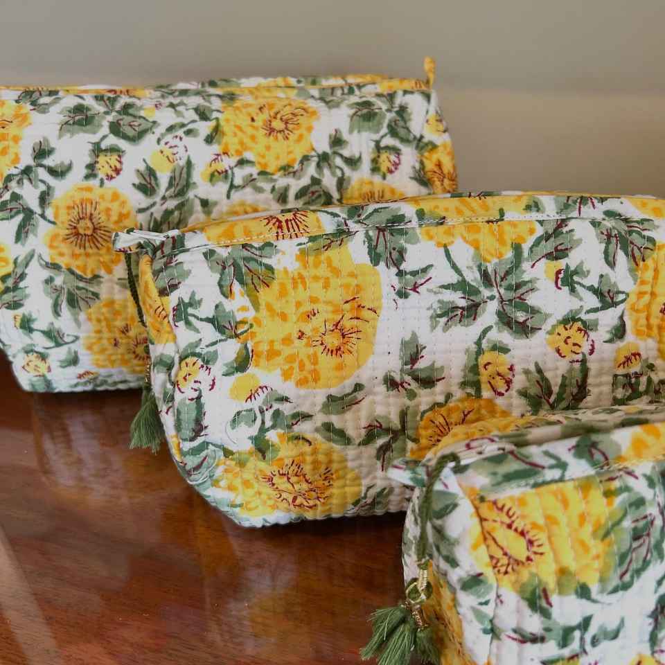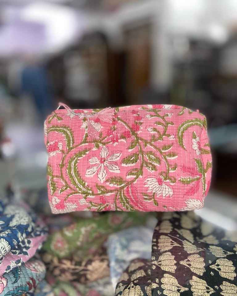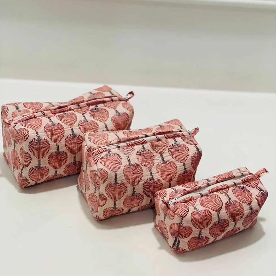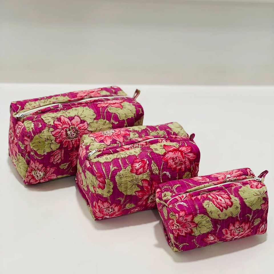Toiletry Makeup Bag Pouch Set of Cotton Quilted Makeup Bag Indian Block Print Makeup and Toiletry Case