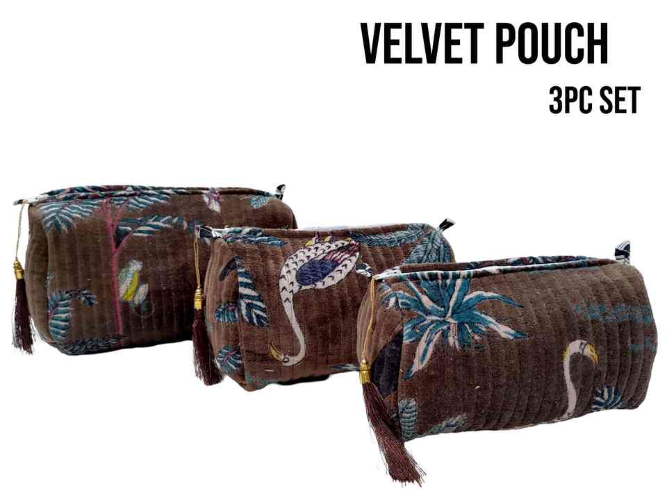 Women 3 Pc Set Velvet Toiletry Pouch Set
