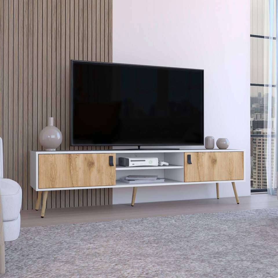 Toka TV Stand with Two Hinged Doors and Central Shelves Elegant and Practical Solution for Your Home Entertainment System