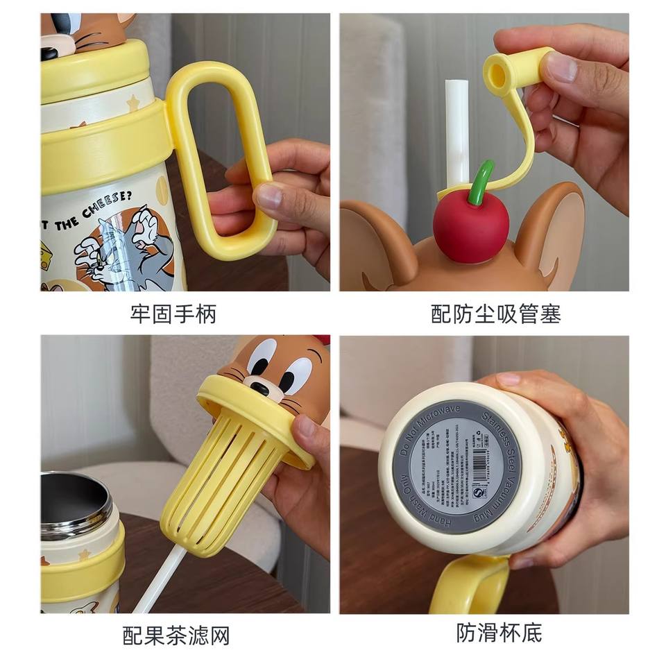 Tom And Jerry Insulated Water Bottle 500Ml With Straw Travel Tumbler For All Ages