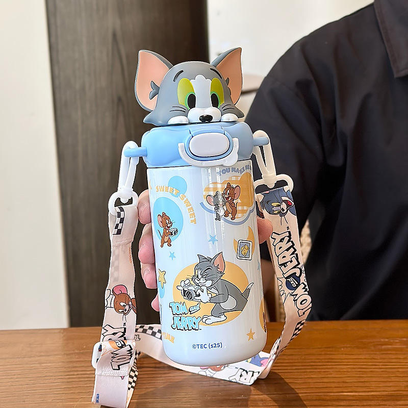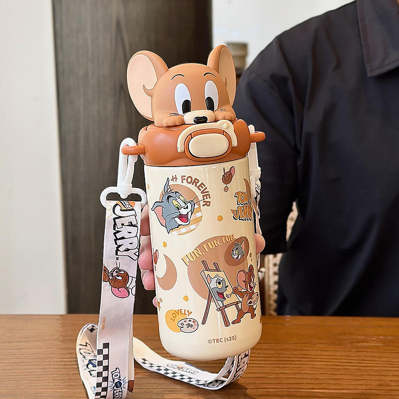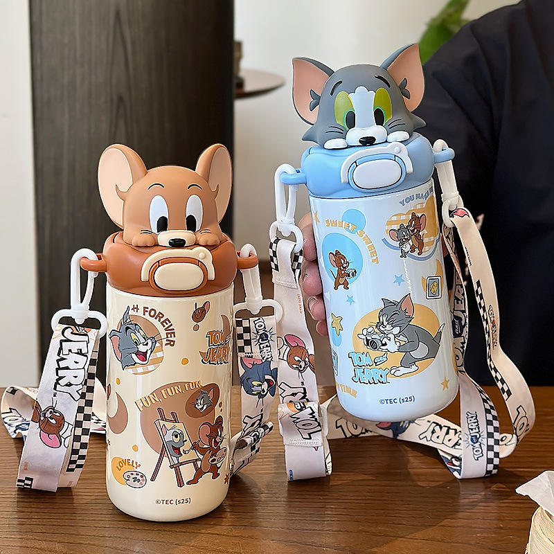 Tom And Jerry Kids Insulated Water Bottle 525Ml With Straw Portable Cup For School And Kindergarten