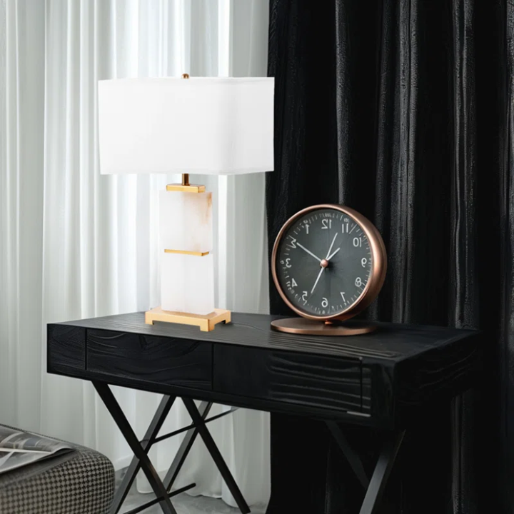 Tomarra Alabaster White Marble Table Lamp Elegant Marble Desk Lamp with Fabric Shade Filters Light for Touch of Elegance