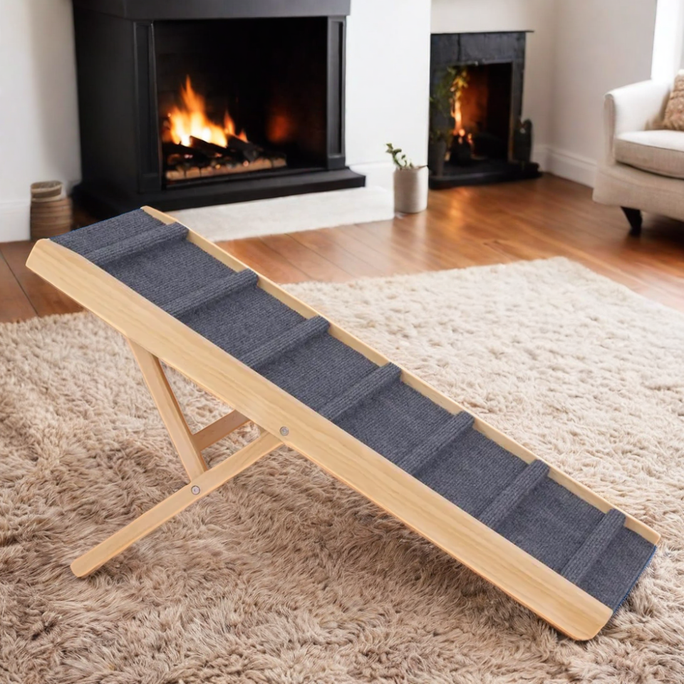Tompo Factory Wholesale Solid Wooden Portable Adjustable Dog Climbing Folding Ladder for Dog Climbing Couch and Dog Ramp