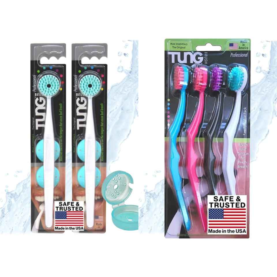 Tung Tongue Brush Oral Cleaner Soft Bristles Tongue Scraper for Fresh Breath Daily Oral Care 2 & 4 Pack