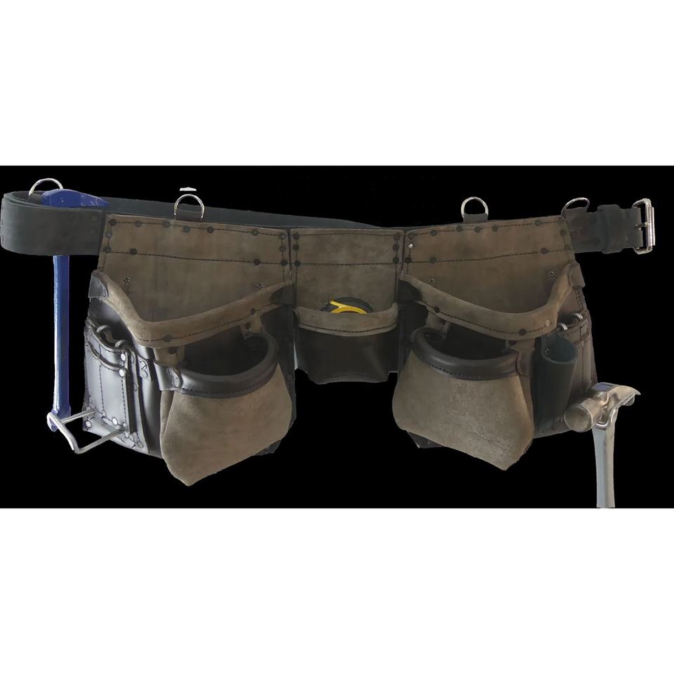 Tool Belt Carpenter Construction Tool Pouch 13 Pockets 29"-54" Waist Size Double-Stitched Suede Custom Color Leather Tool Belt