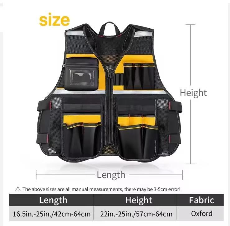 Tool Vest with Multi-pockets and Zipper Heavy Duty Tool Vest for Electricians Workwear Allround Work Tool Vest Reflective Safety