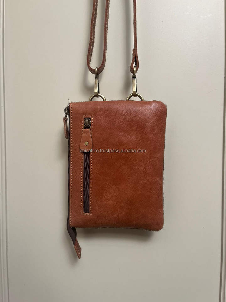 Tooled Leather & Cowhide Crossbody Phone Bag Genuine Leather Carved Mobile Pocket Small Purse Western Hair on Hide Women Handbag