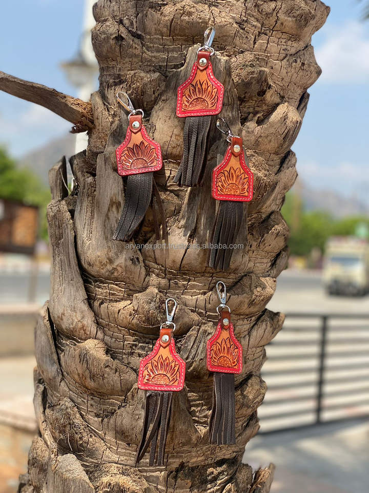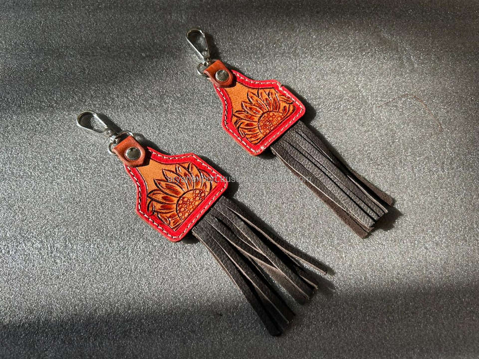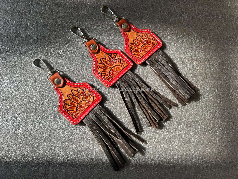 Tooled Leather Keychain Personalized Fringe Key Fob Sunflower Cowgirl Car Key Western Key Keychain Leather Carabiner Key Clip