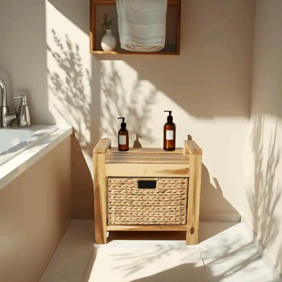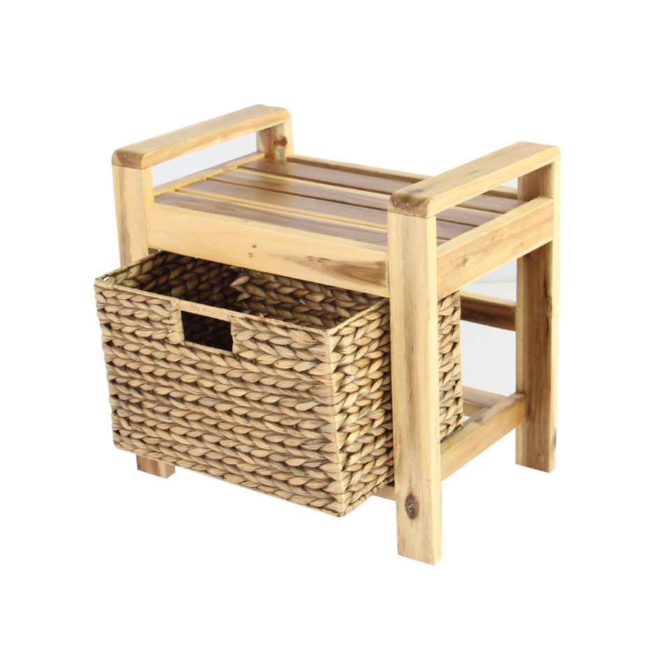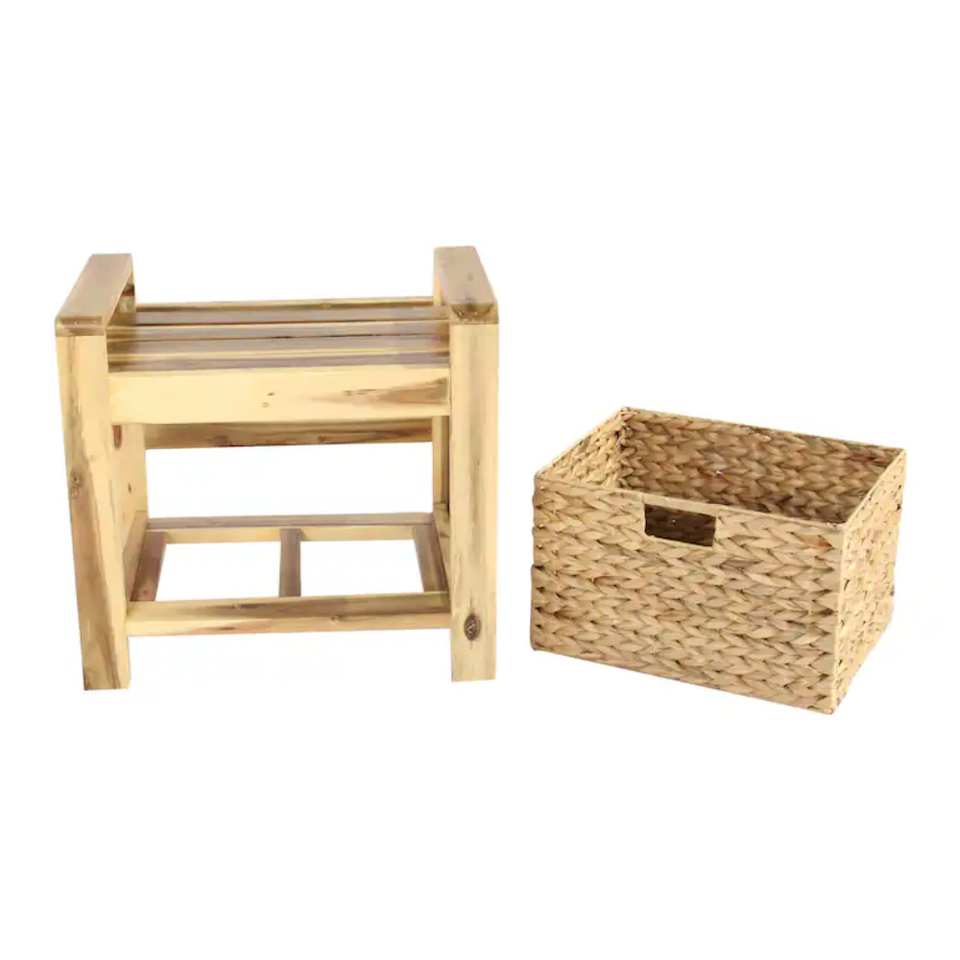 Product name:Wooden Frame Stool with Water Hyacinth Storage Baske