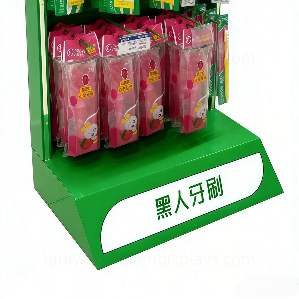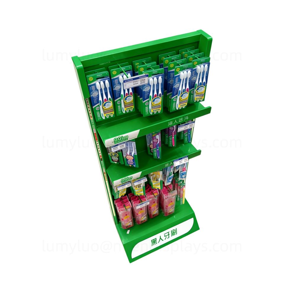 Toothbrush Display Stand with Hooks Board Metal Supermarket Floor Rack Durable Retail Gondola for Oral Care Products