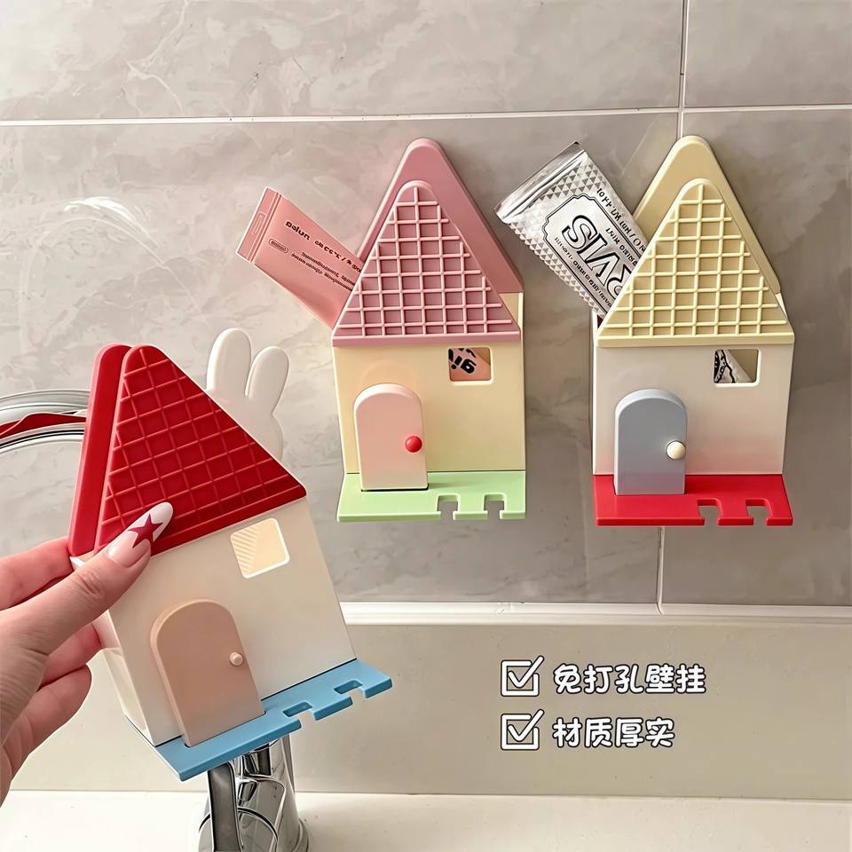 Toothbrush Holder Wall Mounted Plastic Rectangular Bathroom Toothbrush Rack With Cup And Toothpaste Storage