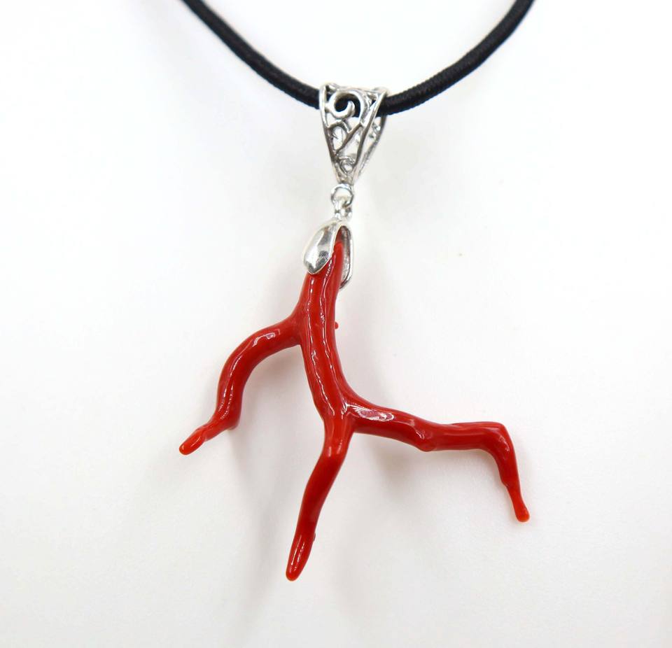 Top A+++ Italian Red Coral Stick Pendant Mediterranean Natural Coral Stick Large 925 Sterling Silver Pendant Necklace Jewelry