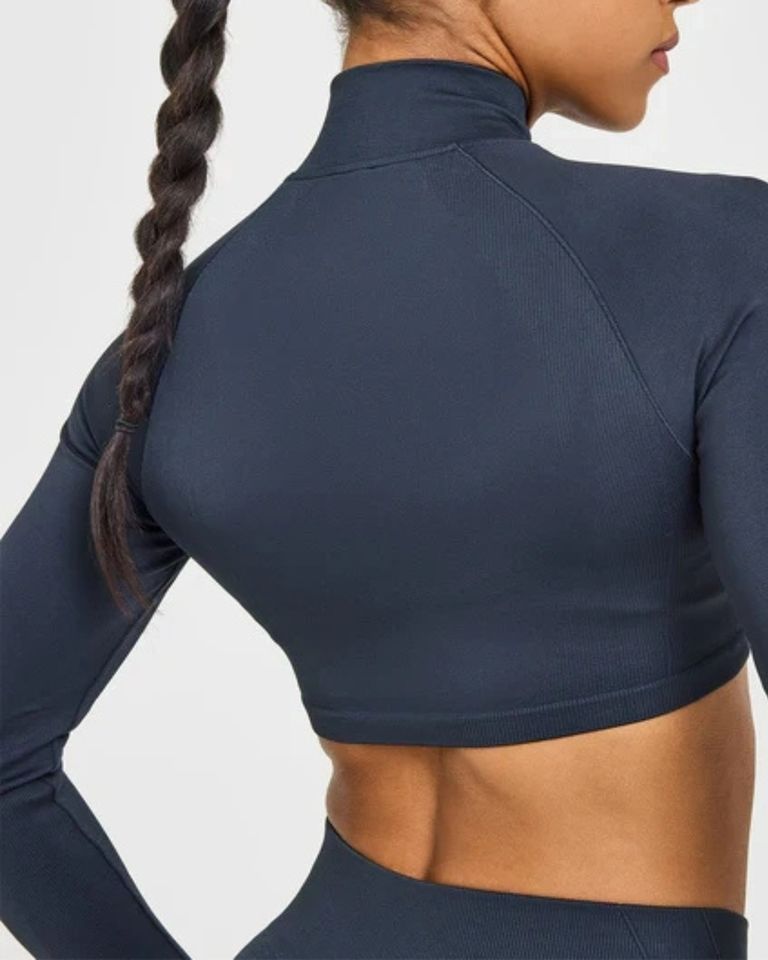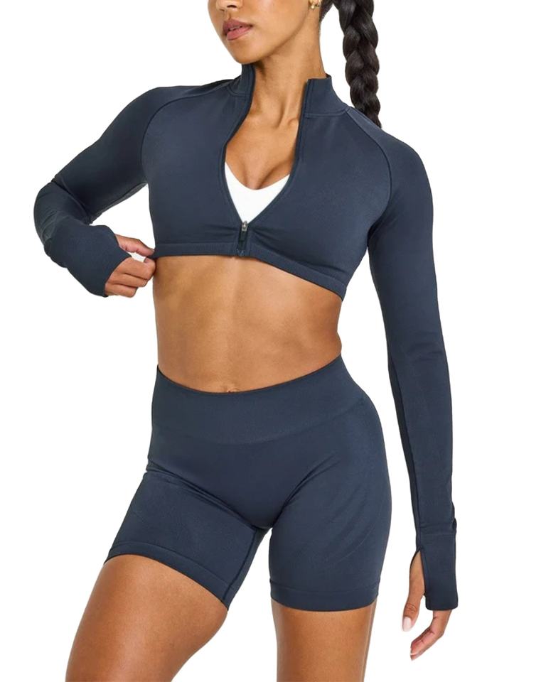 Top Activewear Ladies Slim Fit Yoga Jacket Full Zip Stand Collar Thumbholes Breathable Front Travel Running Coat Tummy Control