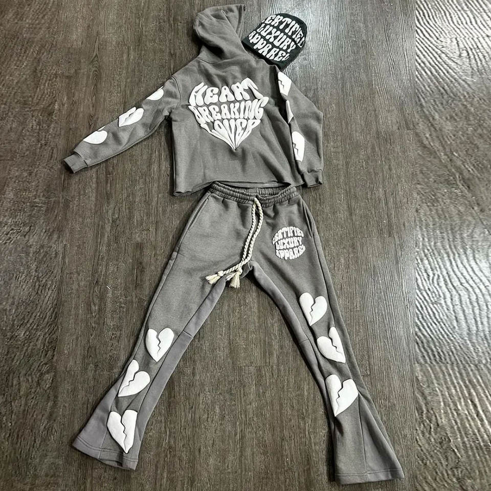Top Best Product Pakistan Made Solid Color Men Distressed Tracksuits Patches Attached Embroidery Men Acid Wash Sweat Suit