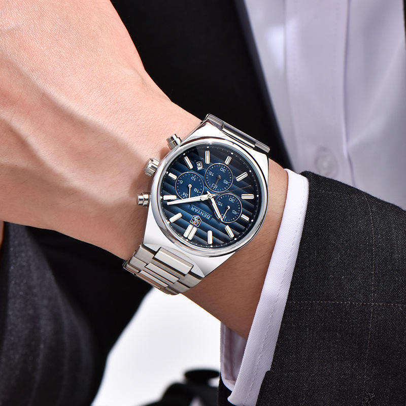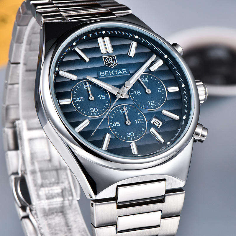 Top Brand BENYAR 5214 Fashion Sport Quartz Watch 42mm Business Man Calendar Waterproof Stainless Steel Strap Luminous 2026
