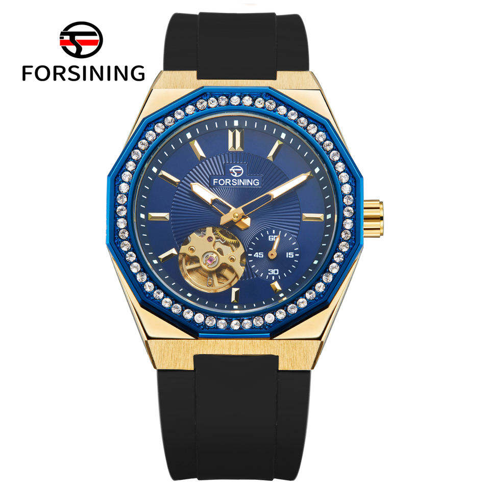 FORSINNING Men's Luxury Automatic Stainless Steel Watch 3D Hollow Diamond Design Luminous Dial 3BAR Water Resistant Tourbillon