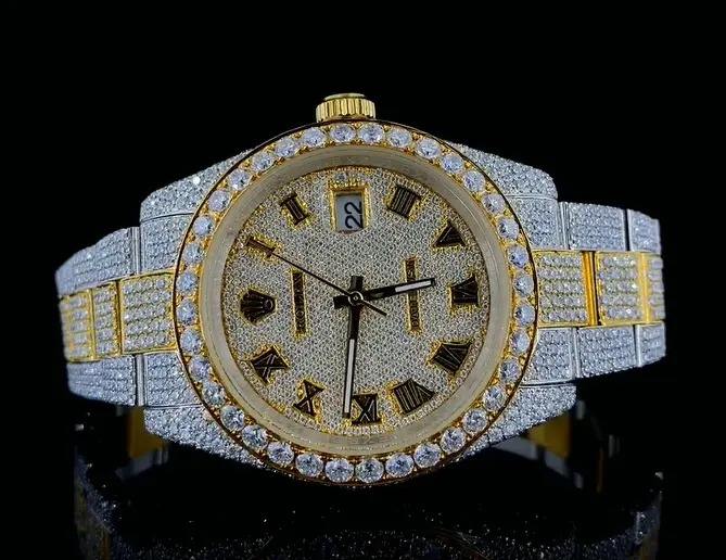 Top Brand Luxury Bling Mechanical Shape Men's Moissanite Stainless Steel Watch Full Diamond Iced Wrist Quartz Glass Round Dial